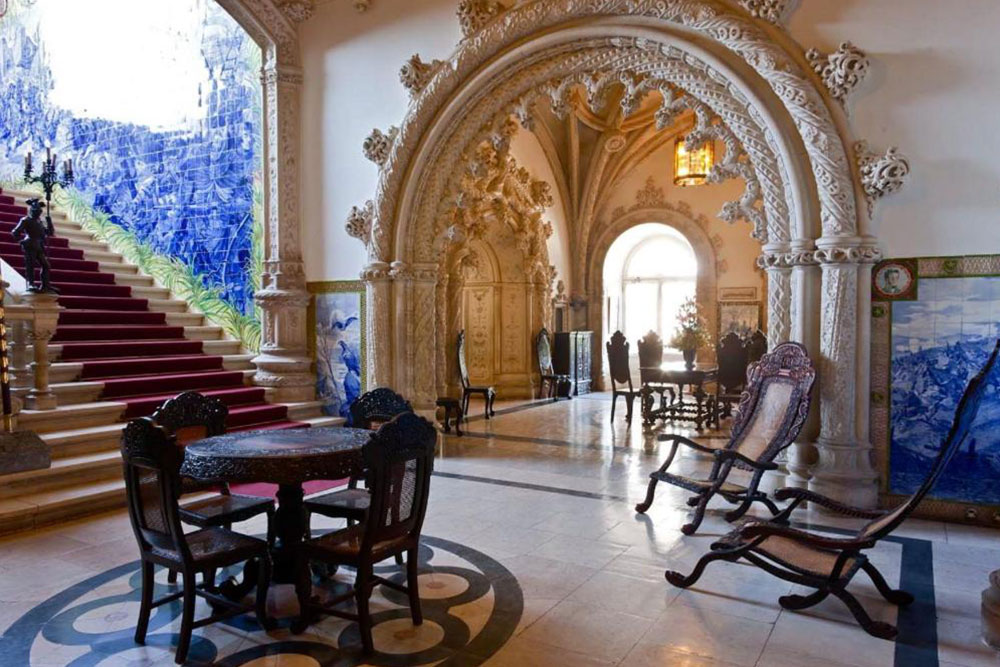 Inside was a grand marble staircase and the highly impressive carved wooden furniture I was told, came from India. The beautiful blue tiles, painted by prominent artists depicting scenes from Portuguese history, including the Battle of Bussaco filled the walls.