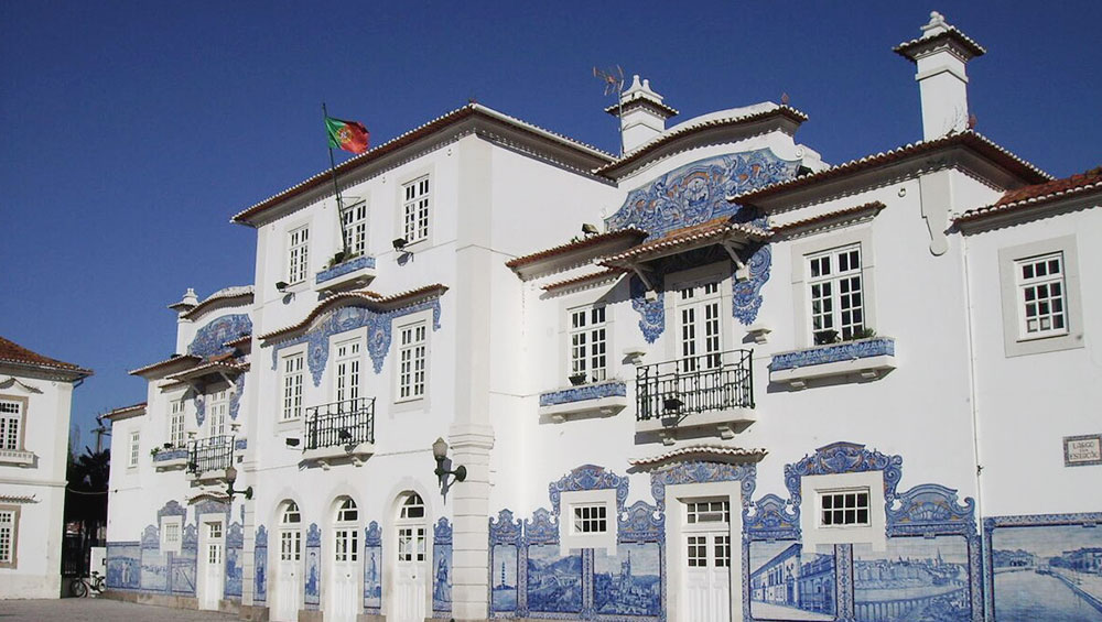 This pretty building, full of natural light, has the most significant collection of outdoor azulejos (Portuguese ceramic tiles) in Aveiro. Each tiled panel reads like a page from the city’s history. The blue azulejos depict typical scenes from this area, a standout against the white walls of the building. It’s an ornamental museum, inviting pedestrians and passengers alike to view the 19th-century chapters of Aveiro’s history book through artwork.