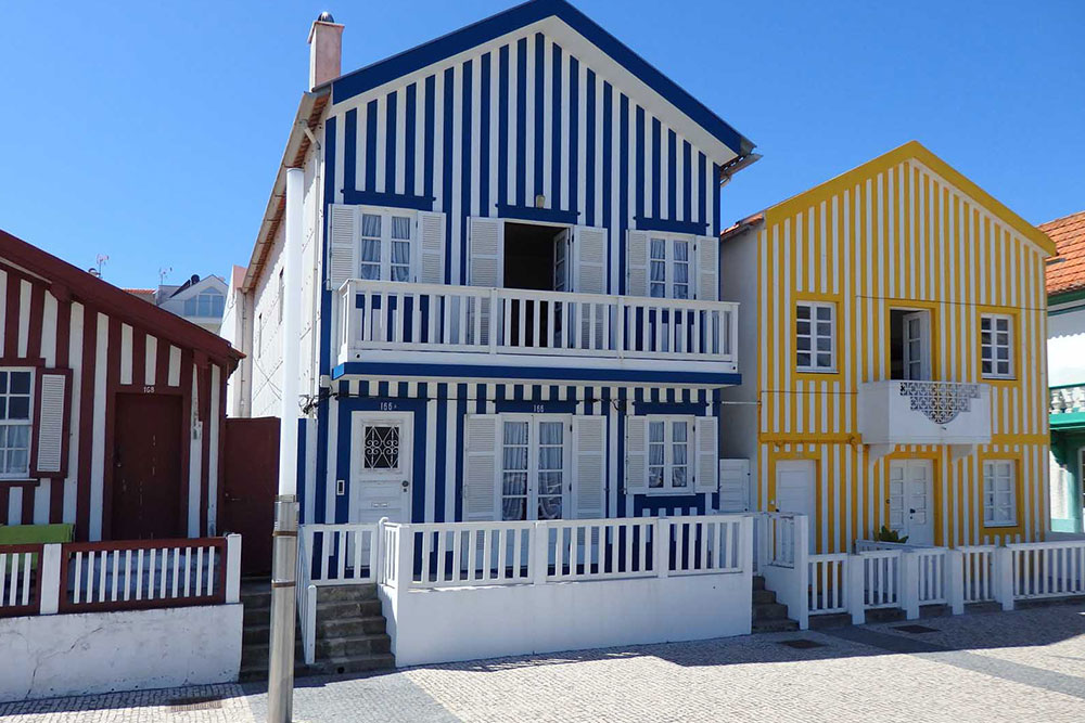 It is worth driving to Costa Nova, a short distance from Aveiro, just to look at the candy striped houses that come in all delightful colours. Walk along the promenade passing these pretty beach houses flanked by palm trees. There are many seafood restaurants, and the beaches are vast and full of surfers and tourists.