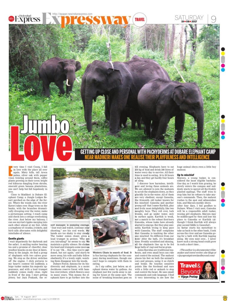 We visit Dubare where elephants are trained and fall in love with them.