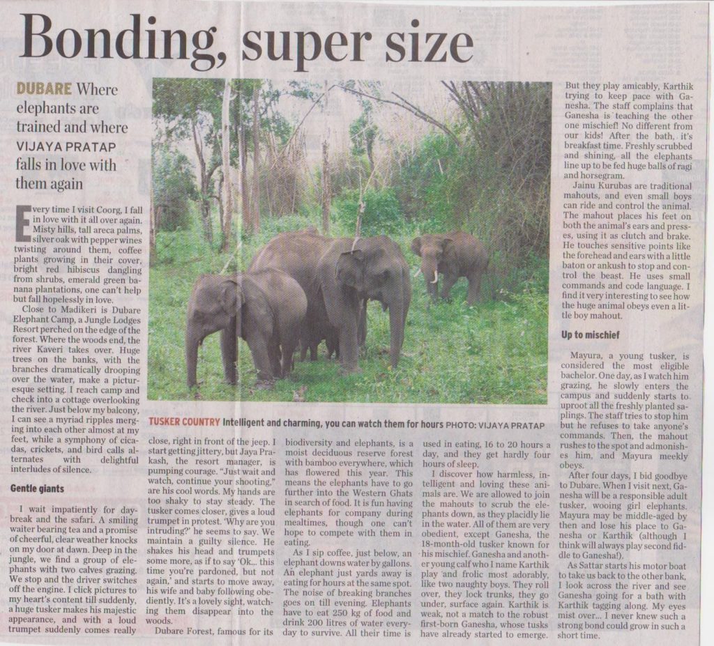 Keywords: Dubare Elephant Campsight-seeing in Coorgelephant safari