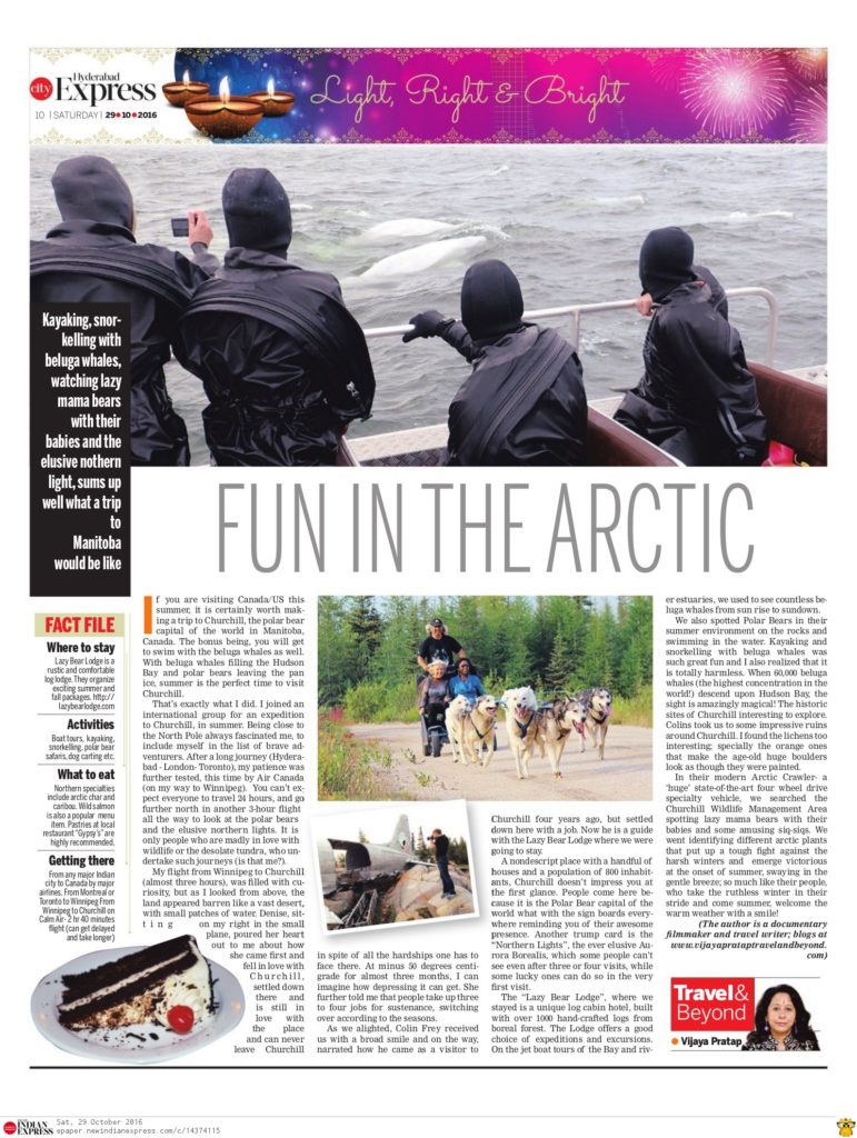In summer ( August/ September), the weather is warmer and one can see thousands of beluga whales but the polar bears are seen only in the distance. The elusive Northern Lights are never guaranteed. But in August I have seen them on a clear night.
