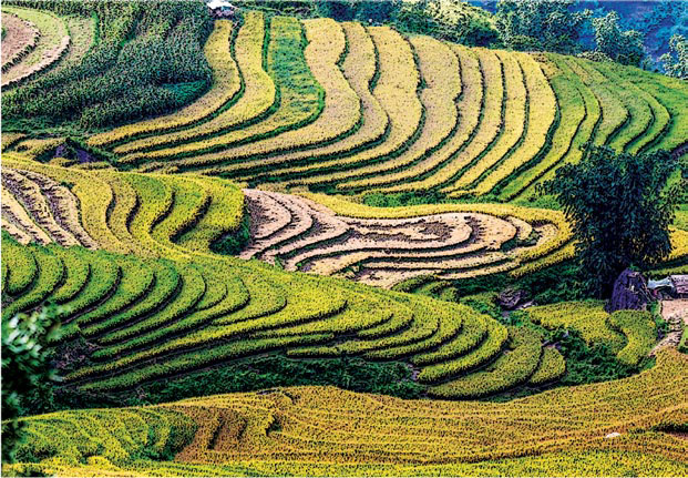 In the idyllic and spotlessly clean village, with flourishing kitchen gardens outside most houses, every drop of water is conserved and recycling is a habit. The villagers practice terrace farming, store water flowing down the hills in small reservoirs and their farm produce is entirely organic. We walk along a winding cobbled path lined with red poinsettias and wild lilies, as life leisurely goes on inside the rustic tin-roofed houses with mud floors and bamboo walls. Men and women with khophis (conical bamboo baskets) strapped to their backs, climb the stepped path effortlessly, carrying food and household goods. Others tend to animals, warmly when they spot tourists.